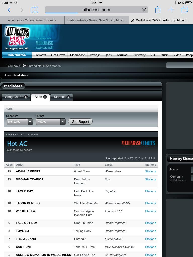 http://headlineplanet.com/home/2015/04/27/adam-lamberts-ghost-town-ranks-as-hot-ac-radios-most-added-song/